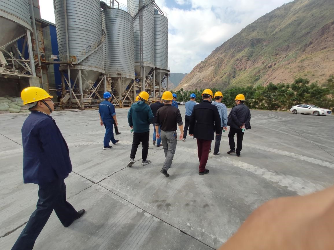 公司領(lǐng)導(dǎo)同考察團(tuán)在石膏堆場參觀合影