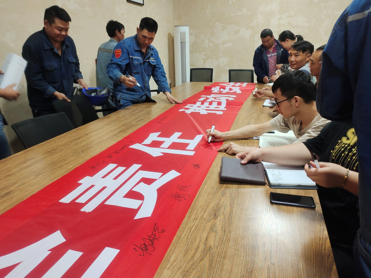 第三部分:各施工單位及公司管理人員簽下軍令狀,即在“落實(shí)安全責(zé)任 推動(dòng)安全發(fā)展”橫幅上簽字,承諾盡職盡責(zé)做好安全生產(chǎn)工作。