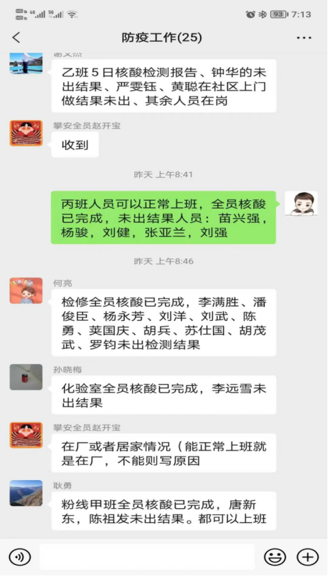受疫情影響,在人員上攀川藍(lán)鼎封控區(qū)無法上班共計(jì)17人,15人居住地在封控區(qū),無法回家就近賓館安排住宿。因部分人員無法正常到崗,川藍(lán)鼎砂漿暫停生產(chǎn),只留3人駐場,其余人員抽調(diào)脫硫,協(xié)助攀藍(lán)鼎保產(chǎn)、防疫工作。因疫情原因通勤問題,員工上下班乘車?yán)щy。公司啟用私車公用,由各班私家車接送,保證員工正常到崗,安全回家。