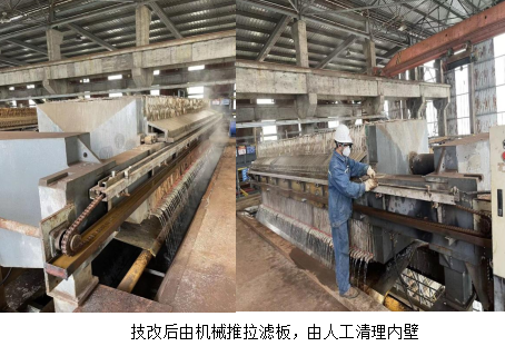 為更好優(yōu)化工序,提高水處理工作效率,威遠(yuǎn)藍(lán)鼎生產(chǎn)部長黃安軍、副部長楊平、宋雨鵬開會討論提出對水處理除釩、除鉻、二次除釩共計6臺壓濾機(jī)進(jìn)行滑軌修復(fù)技改。6月30日計劃技改物資采購,7月底備件陸續(xù)到廠,落實滑軌技改工作,9月15日完成除鉻兩臺壓濾機(jī)技改,生產(chǎn)部現(xiàn)場進(jìn)行試車,技改后人工卸餅時間由90分鐘縮減至30分鐘,裝置使用效果明顯,得到了生產(chǎn)員工認(rèn)可。通過本次技改降低了員工勞動強(qiáng)度,提升了員工卸餅工作效率。接下來將會陸續(xù)完成剩余4臺壓濾機(jī)技改工作,為一線生產(chǎn)提供有力保障。