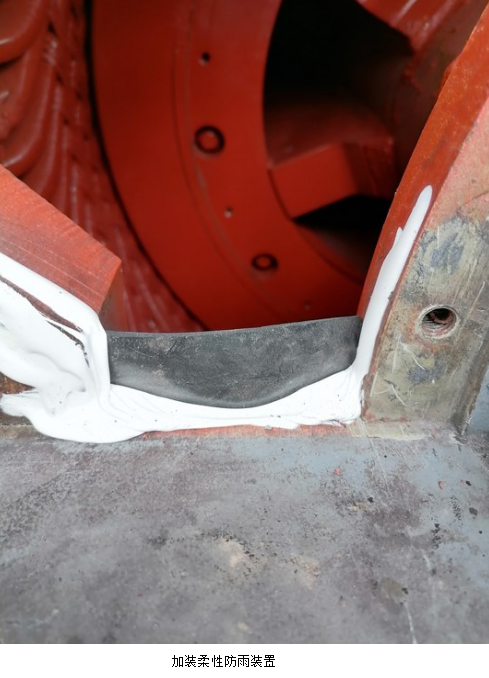 為了消除這一重大險兆安全隱患,電儀人員隨即采取了技改措施,在電機側(cè)蓋水平位置處粘接一塊柔性檔雨板。為了確保萬無一失,所有固定螺絲絲牙和端蓋接觸面涂抹密封膠。從技術(shù)措施上防止了雨水進(jìn)入電機。